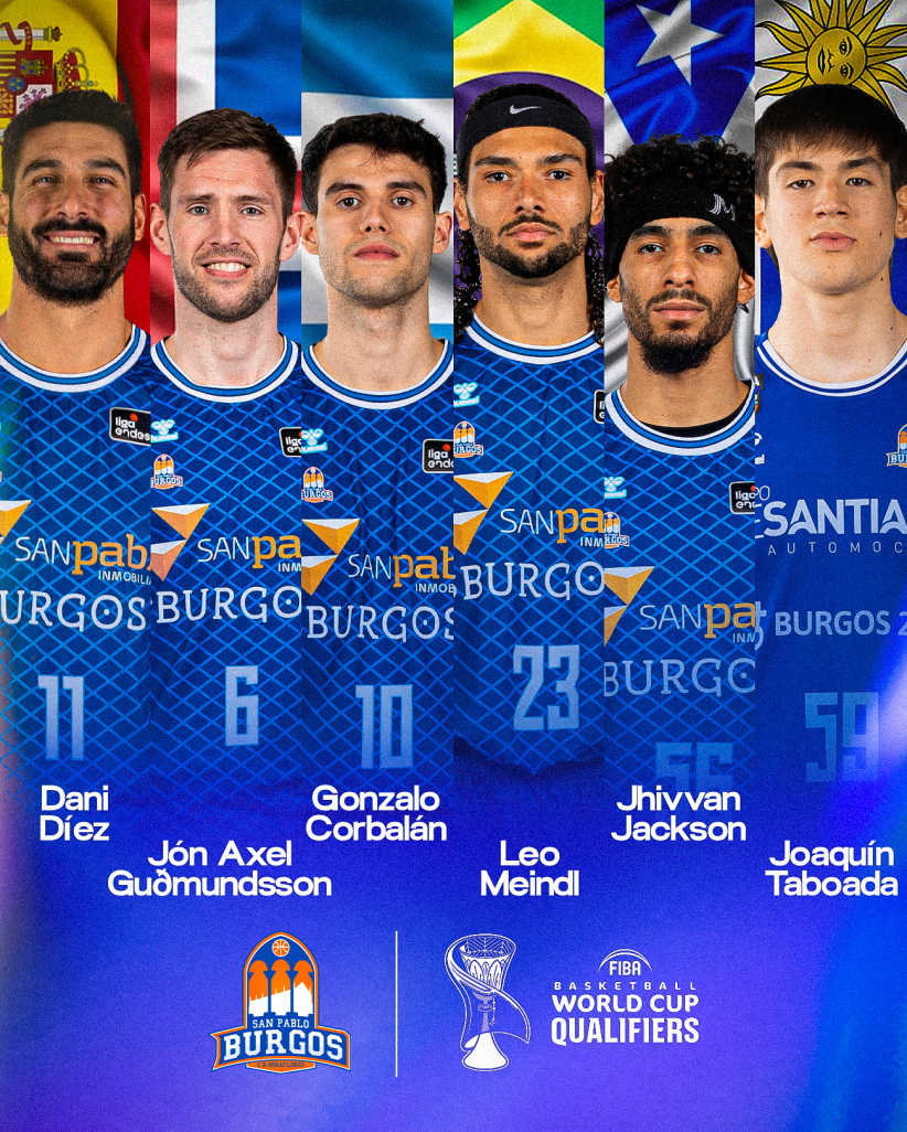 El Recoletas Salud San Pablo Burgos aportará cinco jugadores y el Burgos Grupo de Santiago U22 llevará un jugador a esta ventana FIBA de noviembre, en la que las selecciones nacionales iniciarán desde sus continentes el camino de clasificación para la Copa del Mundo de Baloncesto FIBA 2027.